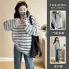 Suéter de Maternidade Jingqi Outono e Inverno 2025 Novo Estilo Solto Que Não Cobre a Barriga, Top Fashion Preguiçoso, Peça de Baixo Feminina para Usar por Baixo