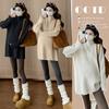 Suéter de Gola Alta Meia-Calça para Gestante Estilo Soltinho Preguiçoso Outono e Inverno Espessado Quente Camisa Base para Gestante Top de Amamentação Roupa para Gestante