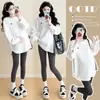 Conjunto de Outono para Gestante 2025 Nova Moda Casual Solto Cobre a Barriga Moletom com Capuz Estilo Preguiçoso Conjunto de Duas Peças Primavera & Outono