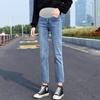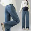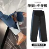 9972# Calças jeans para gestantes primavera e outono, tubo de fumaça, calças abdominais para gestantes, calças largas casuais da moda para mães