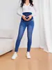 Em estoque Calça jeans feminina grávida, jeans micro elástico alto, primavera e outono, calça casual, jeans feminino grávida para uso externo