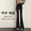 Jeans de Maternidade 2025 Primavera & Outono Roupa Exterior Moda Calças com Bainha Desfiada Elegantes e Ligeiramente Flare para Suporte da Barriga