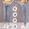 9972# Calças jeans para gestantes primavera e outono, tubo de fumaça, calças abdominais para gestantes, calças largas casuais da moda para mães