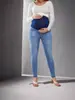 Em estoque Calça jeans feminina grávida, jeans micro elástico alto, primavera e outono, calça casual, jeans feminino grávida para uso externo