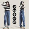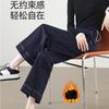 Jeans Tannin para Gestantes Outono e Inverno Novo Calças para Gestantes Forradas com Lã Espessas Calças de Perna Larga Jeans Solto Inverno Simples