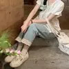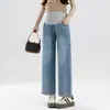 Jeans Cropped Maternidade 2025 Novo Verão Fino Peça Externa Pequeno Solto Efeito Emagrecedor Calças de Pernas Largas Maternidade