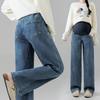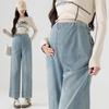 Calça de Maternidade Jingqi Primavera e Outono Roupa Externa Jeans Tamanho Grande Calça de Pernas Largas Calça Reta Roupa de Maternidade Que Não Aperta a Barriga
