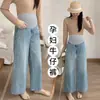 Outono 2024 Novos Jeans Retos Não Abdominais de Perna Larga para Mulheres Grávidas para Uso Externo Calças com Cordão para Mulheres Grávidas para Mulheres Pequenas para Uso no Outono