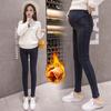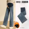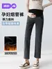 651# Jeans Forrados com Lã para Gestantes Outono e Inverno Calças Grossas de Perna Pequena Roupas de Maternidade da Moda Calças de Suporte Abdominal Calças Compridas da Moda para Mamãe
