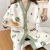 Outono e inverno jacquard algodão ar mensal roupas amamentação mezanino pijamas para mulheres grávidas pijamas terno engrossado pijamas para entrega