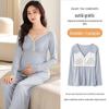 Cardigan com Lapela Calças Manga Comprida Roupas de Lactação Pós-parto Roupa de Grávida Roupas Modai Yuezi Roupa de Casa