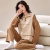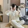 Roupa de flanela lua outono e inverno pijama para gestantes pós-parto manga longa espessada out coral fleece conjunto para amamentação