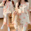Roupa de confinamento primavera e outono algodão puro pós-parto amamentação pijamas de maternidade mulheres grávidas Verão fino pós-parto amamentação conjunto de três peças