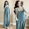 Macacão de maternidade primavera e outono novo conjunto moda outwear inverno com mais veludo macacão suspensório de maternidade conjunto de duas peças petite