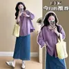 Traje para gestantes 2024 outono novo coreano temperamento suave solto grosso lixado camisa Saia jeans