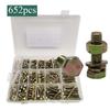 652 peças em caixa aço carbono zincado colorido M4M5M6 parafuso sextavado porca arruela plana arruela de pressão conjunto combinado