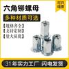 Porca Rebite Meia Sextavada de Aço Inoxidável 304 Cabeça Chata Porca Rebite de Puxar Furo Passante Sextavado Interno e Externo Porca Rebite M4M5M6M8