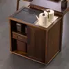 Armário de Chá Móvel de Nogueira Preta Mesa Lateral de Chá com Chaleira Integrada e Balde de Água Armário de Bar de Chá
