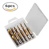 Broca e Rosqueadeira Integrada de Fronteira Torneira Máquina Banhada a Titânio com Torneira de Abertura e Chanfro Rosqueamento 6 Peças Jogo de Torneiras Compostas de Aço Rápido