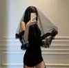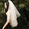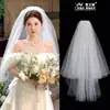 Véu de festa para noiva europeia e americana, camada dupla com borda e pente, decoração simples para fotos de noiva