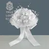 Amazon strass prata noiva dama de honra segurando flor fita botão de rosa noiva segurando buquê de flores em estoque personalizado