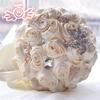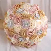 Buquê de Noiva Estilo Ocidental, Buquê de Rosa Simulada Cor Champanhe, Buquê de Casamento de Strass de Alta Qualidade