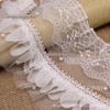 Vestido de noiva com renda de pérolas e malha branca composta multicamadas, saia decote, carcela, acessórios decorativos com miçangas