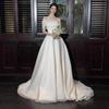 Vestido de Noiva de Comércio Exterior com Cauda, Nova Moda Primavera 2026 Renda Ombro a Ombro Manga Longa Cauda Pequena para Mulheres