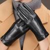 Luvas de couro femininas outono e inverno condução e equitação, além de veludo acolchoado à prova d'água tela sensível ao toque quente pele de coelho luvas de couro PU