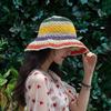 Estilo de cor contrastante elegante mesmo estilo verão arco-íris multicolorido chapéu de palha tecido à mão chapéu de praia de férias à beira-mar guarda-sol ao ar livre