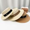 Chapéu de palha estilo coreano feminino primavera e verão britânico retro flat top fresco guarda-sol ao ar livre flat top chapéu de praia feminino