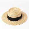 Chapéu de Palha Panamá Lafite de Copa Reta Transfronteiriço Verão Turismo Inglaterra Simples Sombreamento Chapéu de Sol Praia Cornisa Palha