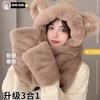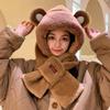 Touca Urso de Pelúcia Cachecol Touca Tudo-em-Um para Mulheres 2024 Novo Inverno Luvas Cachecol com Capuz Conjunto de Duas Peças para Ciclismo
