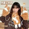 Conjunto de Três Peças de Pelúcia Fofo de Cachorro Corgi para Outono e Inverno para Meninas, Cachecol Versátil, Luvas, Joelheiras de Proteção Fria e Quentes para Exterior