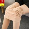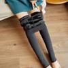Leggings acolchoados de veludo para outono e inverno, roupa externa feminina, cintura alta, calças de yoga cinza, perna fina, justas, peça única, calças quentes de algodão