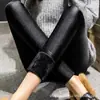 Leggings especiais de lã de cordeiro de comércio exterior transfronteiriço desgaste externo etiqueta de couro de cintura alta forrada de lã forrada de borboleta grossa etiqueta calças skinny