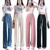 Calça Feminina de Seda de Gelo Wide Leg Verão Fina 2025 Novo Estilo Calça Casual Fresca Cintura Alta Caimento Leve Perna Reta Proteção Solar