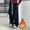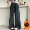 Calça Moletom Curva Forrada com Lã Estilo Coreano para Mulheres, Outono e Inverno, Cintura Alta para Afinar Corpo em Forma de Pera, Calça Casual de Perna Larga, Calça Banana Espessada