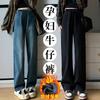 Calça Casual Longa Esportiva Versátil Preta Estilo Coreano Tendência High Street para Mulheres Primavera e Outono Fina Solta para Estudantes