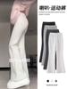 Calça Esportiva Branca e Cinza Flare para Mulheres, Novo Estilo Outono e Inverno 2026, Forrada com Fleece, Cintura Alta, Emagrecedora, Estilo Americano, Calça de Moletom Bootcut para Yoga