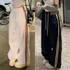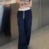 Calças Compridas de Moletom Femininas Estilo Americano Preguiçoso para Primavera e Outono 2025 Soltas com Cós Elástico Emendado Cordão Caimento Pernas Largas