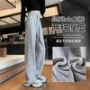 Calças Casuais de Yoga com Cordão Cinza Estilo Americano Femininas Início de Outono Cintura Alta Emagrecimento Perna Reta Perna Larga Calças que Cobrem a Carne