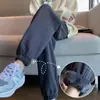 Estilo Novo Primavera e Outono 2026 Forrado com Lã Versão Coreana Solto Moda Simples Calças com Punho Quente Casuais Esportivas Calças de Moletom para Mulheres Tendência