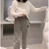 Cabelo 579 grande amor beleza Yiyuan 2022 início da primavera novo estilo coreano calça de moletom cinza calças femininas casuais moda emagrecedor moderno