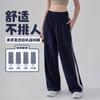 Calça Esportiva Listrada para Mulheres 2026 Nova Primavera e Outono Cintura Alta Casual Solta Perna Larga Petite Slim-Fit Calça de Moletom