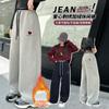 Novas Calças de Moletom Versáteis Estilo Retro Americano com Estampa de Letras e Cordão Largas Casuais Versáteis Baggy Perna Larga Longas