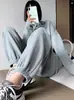 Calças de Moletom com Amarração na Perna Calças de Moletom Cinzas Femininas Primavera, Verão e Outono 2025 Novas Calças Casuais Pequenas e Largas Trendy Ins