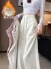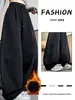 Calça de Moletom Grossa Forrada com Lã Feminina Outono e Inverno 2025 Nova Casual Cintura Alta Solta Perna Larga Comprimento Total Inverno Perna Reta Calça de Moletom