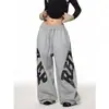 Calça de Moletom com Estampa de Letras Hip-Hop Streetwear Coreano para Mulheres Primavera e Outono Novo Design de Nicho Dança de Jazz Casual Calça Longa