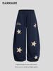 Calça Jogger Casual Bordada com Estrela Retro Americana para Mulheres Outono 2025 Nova Solta Reta de Perna Larga Comprimento Total